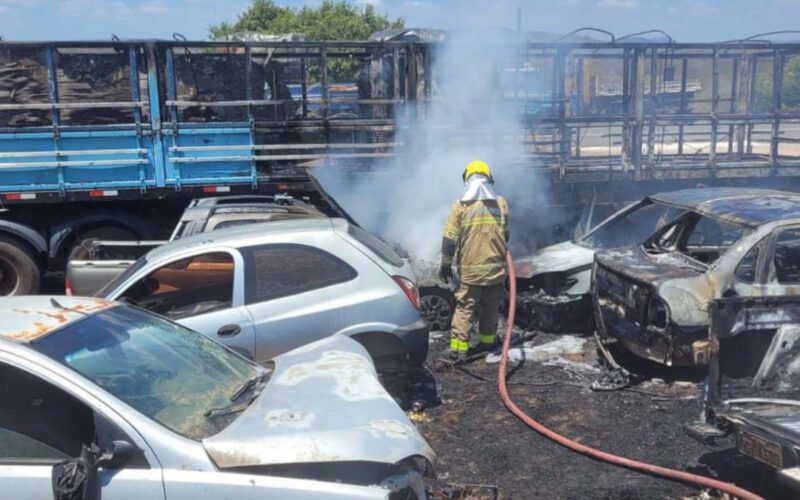 Na manhã deste domingo (21), um incêndio de grandes proporções consumiu dezenas de veículos apreendidos e estacionados em frente à 20ª Delegacia Seccional da Polícia Civil, localizada na BR-230, em Cajazeiras. O fogo, que gerou uma grande nuvem de fumaça visível a quilômetros de distância, atraiu a atenção de motoristas e moradores que passavam pela rodovia.